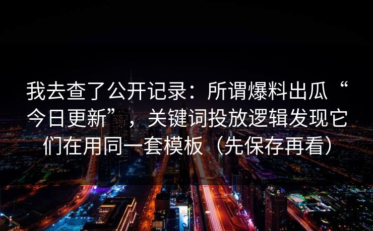 对普通用户来说,理解他们在做什么,比被动刷屏更有用:当标题出现高度模式化词汇,并伴随“先保存再看”等强烈诱导时,基本可以判定这条信息属于模板化流量操作。